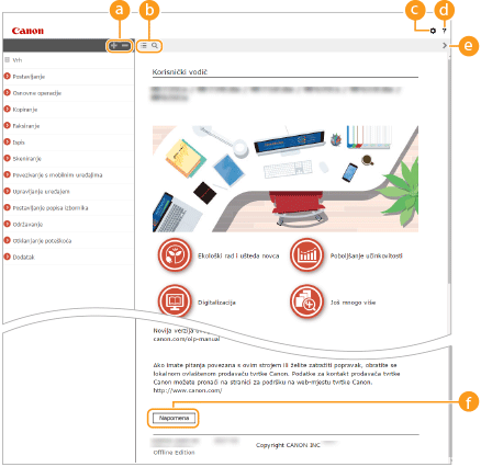 Kliknite da biste prikazali informacije o tome kako pregledati Korisnički vodič, kako pretraživati itd.