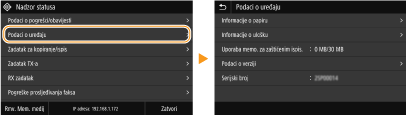 Možete promijeniti razne postavke vezane uz zaslon, kao što je jezik zaslona: <Postavke pokazivača>