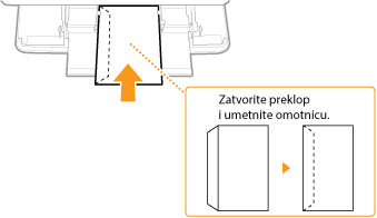 Omotnice Monarch, COM10, DL ili ISO-C5 umetnite okomito (tako da je kratak rub okrenut prema uređaju) i tako da je strana bez ljepila (prednja strana) okrenuta prema gore. Ne možete ispisivati na stražnjoj strani omotnica.