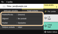 Prilikom prilaganja skeniranih originala poruci e-pošte prije slanja je moguće definirati predmet, poruku, adresu za odgovor i prioritet e-pošte.