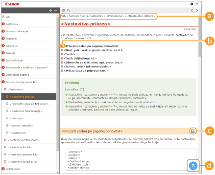 Oblika zaslona za Navodila za uporabo