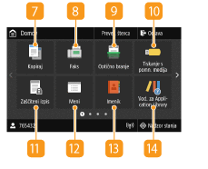 Prikažejo »Priljubljene nastavitve«, ki so registrirane za kopiranje, faksiranje in optično branje. Dodajanje gumbov na zaslon Domov