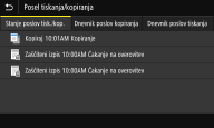 Prikaže trenutno stanje izbranega elementa. Kot primer je spodaj prikazan zaslon <Posel tiskanja/kopiranja>.