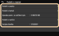 Ko pritisnete <Nadzor stanja>, se prikaže zaslon, na katerem si lahko ogledate potek dokumentov, kot tudi stanje naprave in informacije o omrežnih nastavitvah.