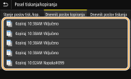 Če je možnost <Prikaz dnevnika poslov> nastavljena na <Izklopi>, si ne morete ogledati dnevnika opravil kopiranja. <Prikaz dnevnika poslov>
