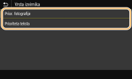 Prednost je dana kakovostnemu natisu fotografij. <Prioriteta teksta>
