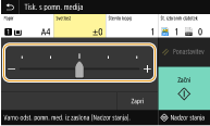 Določite, ali želite povečati ali pomanjšati izvirnik glede na razpon tiskanja papirja. Upoštevajte, da povečava/pomanjšava ne vpliva na razmerje višina/širina izvirnika.
