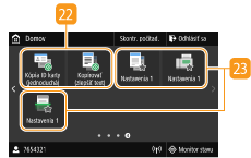 Zobrazí obľúbené nastavenia, ktoré sú uložené pre kopírovanie, faxovanie a skenovanie. Pridanie tlačidiel na obrazovku Domov