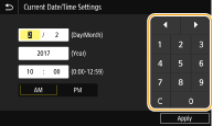 Діапазон значеньЗначення в дужках ( ), які відображаються під полем для введення, – це діапазон допустимих значень. Відображення кнопок, відмінних від цифрових клавішЯкщо відображаються кнопки <+>/<-> або / , їх можна натиснути, щоб збільшити або зменшити цифрове значення чи перемістити курсор. |