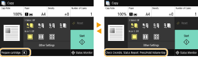 Повідомлення відображаються на екрані, якщо бракує паперу, завершується термін служби тонера в картриджі тощо. Для отримання додаткової інформації див. розділ «Усунення несправностей (FAQ)» на веб-сайті електронного посібника.