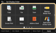 Щоб кнопки було легше використовувати, можна змінити порядок розташування кнопок на свій смак. Наприклад, спочатку можна розмістити функції, які використовуються найчастіше, або можна розташувати кнопки функцій разом із кнопками швидкого доступу для пріоритетних параметрів. Щоб було зручніше переглядати екран Home, замість кнопки можна вставити пробіл.