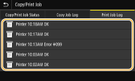 Якщо для параметра <Display Job Log> вибрано значення <Off>, журнали друку перевірити неможливо. <Display Job Log> |