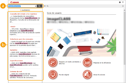 Haga clic para visualizar información sobre cómo ver la Guía de usuario, cómo realizar una búsqueda y otra información.