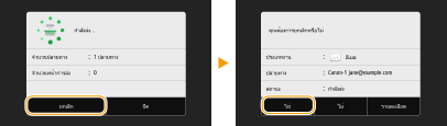 ถ้าคุณต้องการยกเลิกการส่งเอกสารในทันทีหลังจากที่เลือก <เริ่ม> ให้เลือก <ยกเลิก> บนจอแสดงผลหรือกด