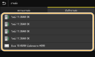 ในการตรวจสอบไฟล์บันทึกข้อมูลของเอกสารที่ส่ง1 | เลือกเอกสารที่มีไฟล์บันทึกข้อมูลที่คุณต้องการตรวจสอบในแท็บ <บันทึกงานส่ง> <OK> จะปรากฏขึ้น เมื่อมีการส่งเอกสารเสร็จสมบูรณ์ และ <ข้อผิดพลาด> ปรากฏขึ้นเมื่อส่งเอกสารไม่สำเร็จ เนื่องจากถูกยกเลิกหรือเกิดข้อผิดพลาดบางประการ ![]() แสดงข้อมูลรายละเอียดเกี่ยวกับเอกสาร ![]() เมื่อหมายเลขสามหลักปรากฏขึ้นในกรณีที่เกิด <ข้อผิดพลาด> ตัวเลขนี้จะแสดงรหัสข้อผิดพลาด สำหรับข้อมูลเพิ่มเติม โปรดดู "การแก้ไขปัญหา (FAQ)" บนเว็บไซต์คู่มือออนไลน์ การลงทะเบียนปลายทางของเอกสารที่ส่งลงในสมุดที่อยู่ สำหรับเอกสารที่ส่งไปยังปลายทางที่ไม่ได้ลงทะเบียนในสมุดที่อยู่ คุณสามารถลงทะเบียนปลายทางนั้นลงในสมุดที่อยู่โดยเลือก <ลทบ.ไปยังสมุดที่อยู่> บนหน้าจอรายละเอียด |