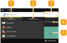 เมื่อคุณเลือก <สแกน> ในหน้าจอ Home หน้าจอคุณลักษณะขั้นพื้นฐานเกี่ยวกับการสแกนจะปรากฏขึ้น