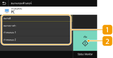 ใช้ปุ่มนี้เพื่อเริ่มต้นการสแกน การเลือก <ขาวดำ> จะเริ่มต้นการสแกนขาวดำ การเลือก <สี> จะเริ่มต้นการสแกนสี