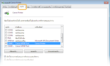 พอร์ต TCP/IP มาตรฐาน | นี่คือพอร์ตมาตรฐานของ Windows เมื่อคุณใช้พอร์ตชนิดนี้ คุณต้องเพิ่มพอร์ตใหม่ทุกครั้งที่เปลี่ยนที่อยู่ IP ของเครื่อง เลือกพอร์ตชนิดนี้เมื่อคุณใช้เครื่องในสภาพแวดล้อม IPv6 และเมื่อคุณไม่สามารถเพิ่มพอร์ต MFNP |