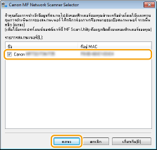 ในการใช้งานเครื่องนี้เป็นเครื่องสแกน คุณต้องดำเนินขั้นตอนการเตรียมความพร้อมให้เสร็จสิ้นก่อนล่วงหน้า รวมถึงการติดตั้งซอฟต์แวร์ลงในคอมพิวเตอร์ สำหรับข้อมูลเพิ่มเติม โปรดดูคู่มือของไดรเวอร์ที่เกี่ยวข้องบนเว็บไซต์คู่มือออนไลน์ ใน Windows เมื่อเชื่อมต่อเครื่องนี้กับคอมพิวเตอร์ผ่่าน LAN แบบไร้สายหรือแบบใช้สาย คุณต้องลงทะเบียนเครื่องนี้ใน "MF Network Scanner Selector (ตัวเลือกเครื่องสแกนผ่านเครือข่าย MF)" โดยใช้ขั้นตอนต่อไปนี้ ขั้นตอนนี้จะไม่จำเป็น หากเครื่องและคอมพิวเตอร์ของคุณเชื่อมต่อผ่าน USB