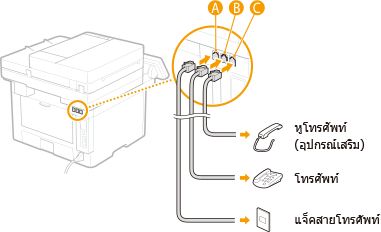 หากคุณกำลังใช้โทรศัพท์หรือเครื่องตอบรับ ให้เชื่อมต่อเข้ากับแจ๊คโทรศัพท์ภายนอก (