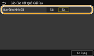 Khi bạn chọn <Bật>, một phần tài liệu được gửi có thể được bao gồm trong Báo Cáo Kết Quả Gửi.