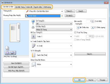 Chỉ định cài đặt in khi cần thiết, và nhấp vào [OK].