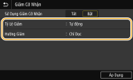 <Sử Dụng Giảm Cỡ Nhận> <Tắt> <Bật>  <Tỷ Lệ Giảm> <Tự động>  <97%> <95%> <90%> <75%> <Hướng Giảm> <Dọc/Ngang> <Chỉ Dọc>  |