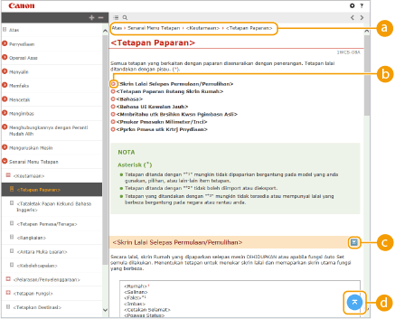 Klik untuk memaparkan maklumat tentang cara untuk melihat Panduan Pengguna, bagaimana untuk melakukan carian, dan maklumat lain.