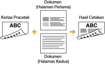 Tetapan <Tukar Kaedah Suapan Kertas>Apabila anda mencetak pada kertas yang dicetak awal, anda perlu mengubah arah kertas yang dimuatkan menghadap setiap kali anda melakukan cetakan 1 muka dan 2 muka. Walau bagaimanapun, jika <Tukar Kaedah Suapan Kertas> ditetapkan kepada <Keutamaan Muka Pencetakan>, arah menghadap yang anda gunakan bagi memuatkan kertas pracetak untuk cetakan 2 muka (bahagian logo menghadap ke bawah) juga boleh digunakan untuk cetakan 1 muka. Tetapan ini berguna terutamanya jika anda kerap melakukan kedua-dua cetakan 1 muka dan 2 muka. <Tukar Kaedah Suapan Kertas> |