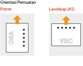 Muatkan kertas dengan muka berlogo depan (muka untuk mencetak halaman pertama dokumen) menghadap ke atas.