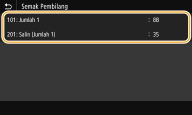 <Prkhidmatan Awas> membolehkan komunikasi dengan pelayan pemantauan jauh. Pelaksanaan item ini membolehkan maklumat mengenai mesin dihantar secara berkala kepada pelayan pemantauan jauh yang dihubungkan kepada mesin. <Smk Konfig. Pranti> membolehkan anda untuk menyemak unit pilihan yang dipasang pada mesin. |