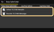Apabila <Papar Log Kerja> ditetapkan kepada <Tak Aktif>, anda tidak boleh menyemak log cetakan. <Papar Log Kerja> |