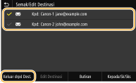 2 | Pilih kotak semak untuk destinasi yang akan dipadamkan dan pilih <Keluar drpd Dest.>. ![]() ![]() Jika anda memilih kotak semak Kumpulan, anda boleh melihat destinasi yang berdaftar dalam kumpulan dengan memilih <Butiran> <Destinasi>. |