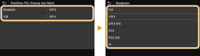 Tetapan ini membolehkan anda untuk mencetak kod bar disokong oleh Barcode Printing Kit. Jika <Dayakan> dipilih, mesin akan menjana kod bar apabila ia menerima kod bar arahan dari komputer tuan rumah. Jika <Nyahdaya> dipilih, kod bar akan dijana, walaupun arahan kod bar dihantar dari komputer hos.
