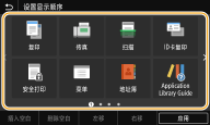 可以向主页画面添加常用功能的快捷键,如 <复印>、<传真> 和 <扫描>。例如,可以通过将一系列设置(如“扫描原稿两面,保存为高压缩 PDF 文件并通过电子邮件发送”)分配给单个按钮来提高任务的执行速度和效率。