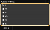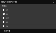 如果装入纸张时未显示以上画面如果一直将相同的纸张装入多功能托盘,可以通过将纸张尺寸和类型注册为默认设置来跳过纸张设置操作。不过,注册了默认设置时,将不会显示以上画面。若要显示此画面,请选择 <装入纸张时指定> (为多功能托盘注册默认的纸张设置)。 |