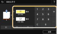 2 | 指定 <X> 侧和 <Y> 侧的长度。 选择 <X> 或 <Y>,然后使用数字键输入每一侧的长度。 ![]() ![]() 如果您在按钮 <S1> 至 <S3> 上注册常用的纸张尺寸,可通过单键操作进行调用。 注册自定义纸张尺寸 |