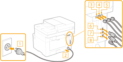 电源插头  电源线  电话线 * 外接电话 * 听筒 * USB 键盘 * USB 电缆 * 局域网电缆 * | | | |
