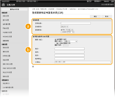 由于本机上生成的证书没有 CA 签名,因此根据与之通信的设备,可能会发生通信错误。要让证书颁发机构颁发带 CA 签名的证书,需要获得 CSR(证书签名请求)的数据,管理员可以从远程用户界面生成此数据。颁发证书时,会将其注册在密钥中,并生成 CSR。