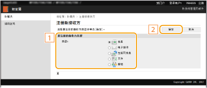 选择要注册的接收方类型,然后单击 [确定]。