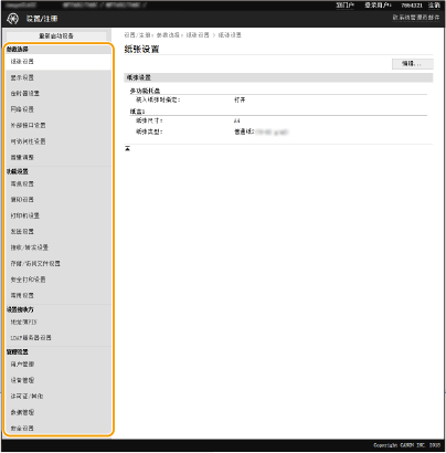 可通过使用远程用户界面更改多项机器设置。大多数设置也可在本机上设置,但是某些设置只可使用远程用户界面设置。本节介绍使用远程用户界面更改本机设置的基本流程。