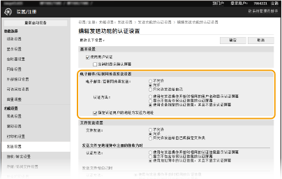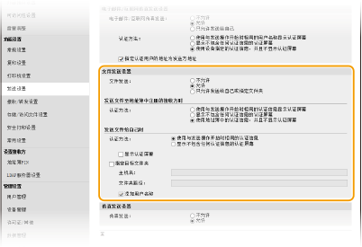 当在 [文件发送] 中指定了 [只允许发送给自己或指定文件夹] 时