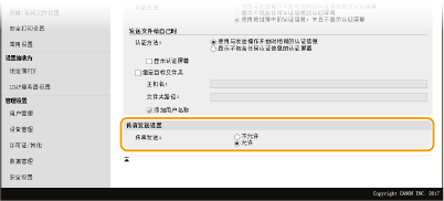 [不允许] | 阻止保存到共享文件夹和 FTP 服务器。扫描功能中的 <文件> 将无法再使用。 |