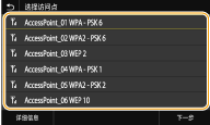 可以搜索可用于连接的无线路由器(或访问点),并从本机的显示屏中选择其中之一。对于网络密钥,请输入 WEP 密钥或 PSK。选择无线路由器之前,请检查和记录所需设置信息,包括 SSID 和网络密钥(