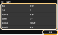 即使本機關閉,已註冊的設定也會儲存。 如果要刪除已註冊設定,請選擇 <影印>  <其他設定>  <常用設定>  選擇設定,然後選擇 <刪除>  <是>。 |