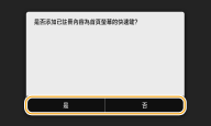 如果選擇 <是>,將出現一個訊息。查看訊息,然後選擇 <確定>。註冊的設定組合會作為快速鍵按鈕新增至首頁畫面。