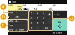 <原稿/分裝類型>![]() | 可以使用預設影印倍率放大或縮小影印,例如 <A5->A4/LTR>,或是設定自訂影印倍率,以 1% 為單位增減。 |