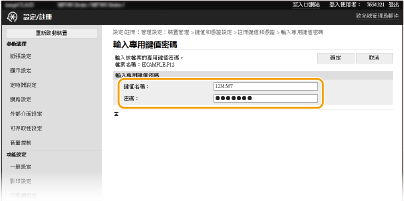 輸入要註冊之檔案的私密鍵値組密碼的英數字元。