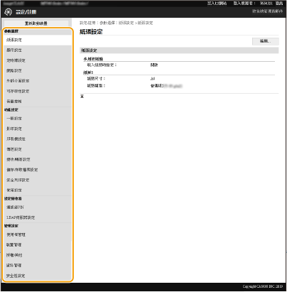 某些設定只有在以系統管理員模式登入時才能變更。 有些設定可能需要與此處所述程序不一樣的操作。 |