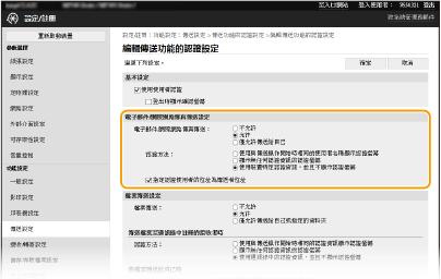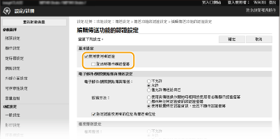 [傳送功能的認證設定]。
